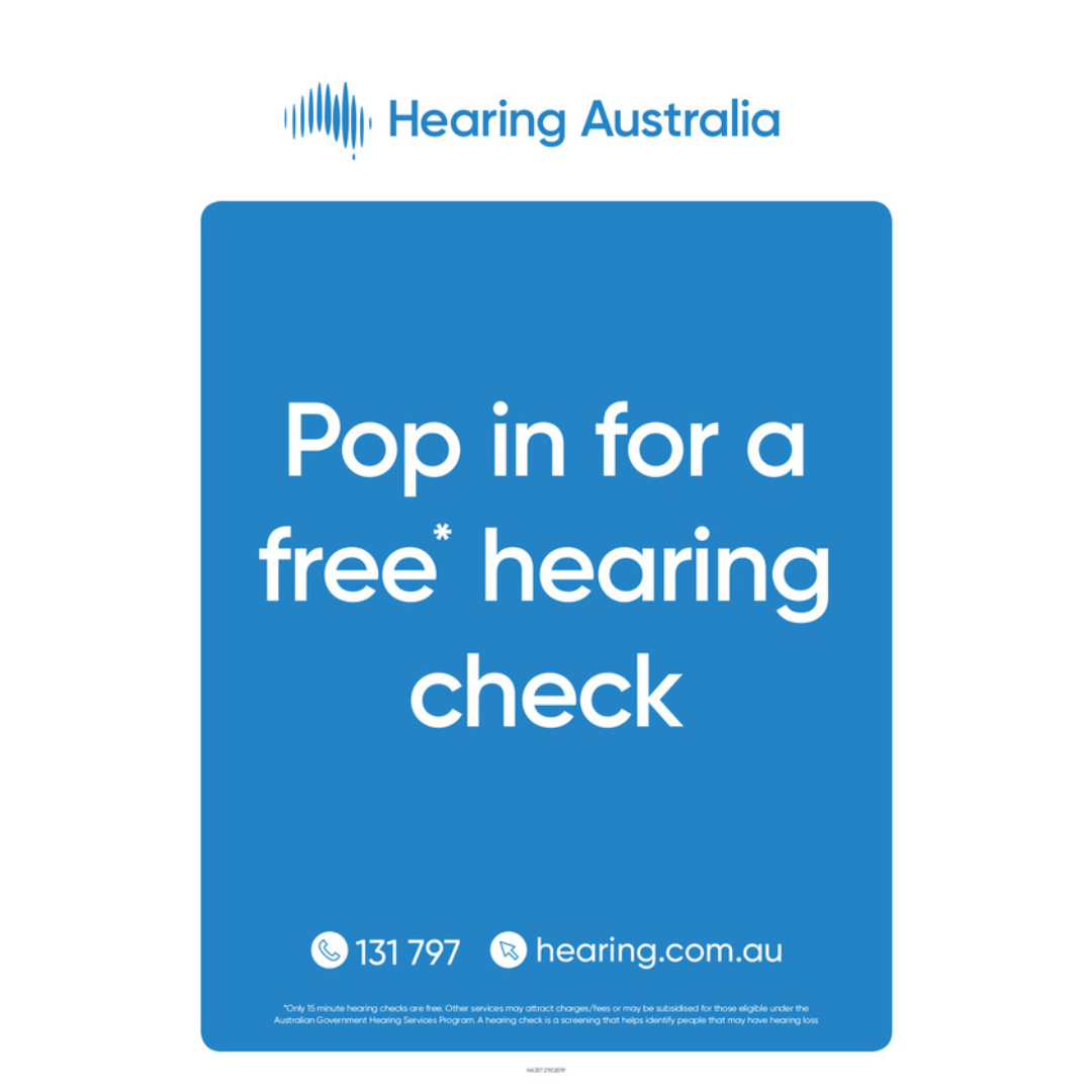 Join us as the Community Hearing Advisor from Hearing Australia are offering free 15-minute hearing checks to our local community.