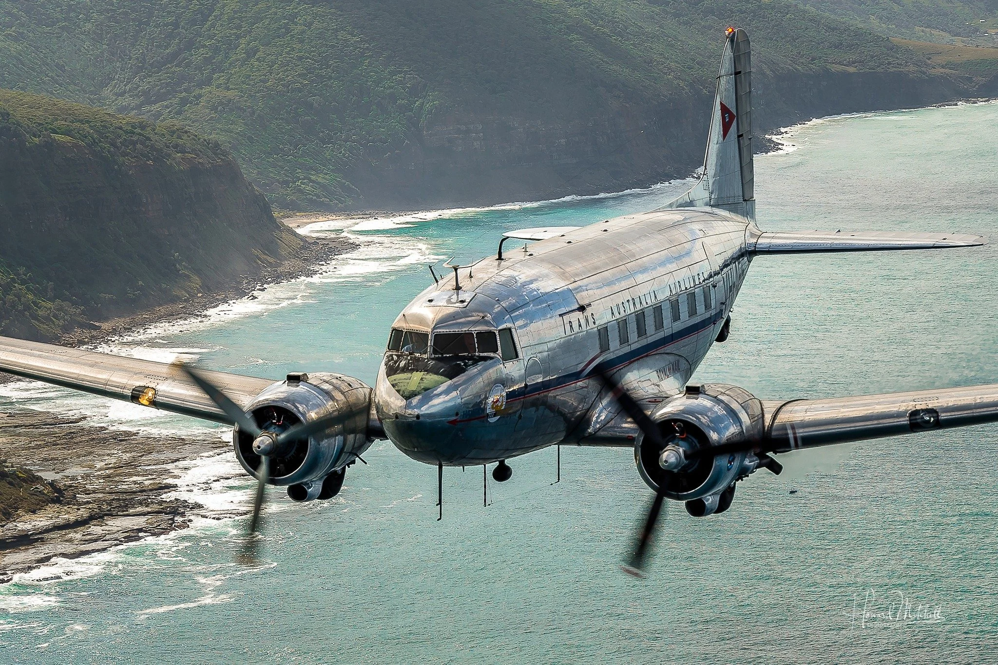 Th HARS Douglas C-47B Dakota travelling along the coast in 2025. Photo: Howard Mitchell