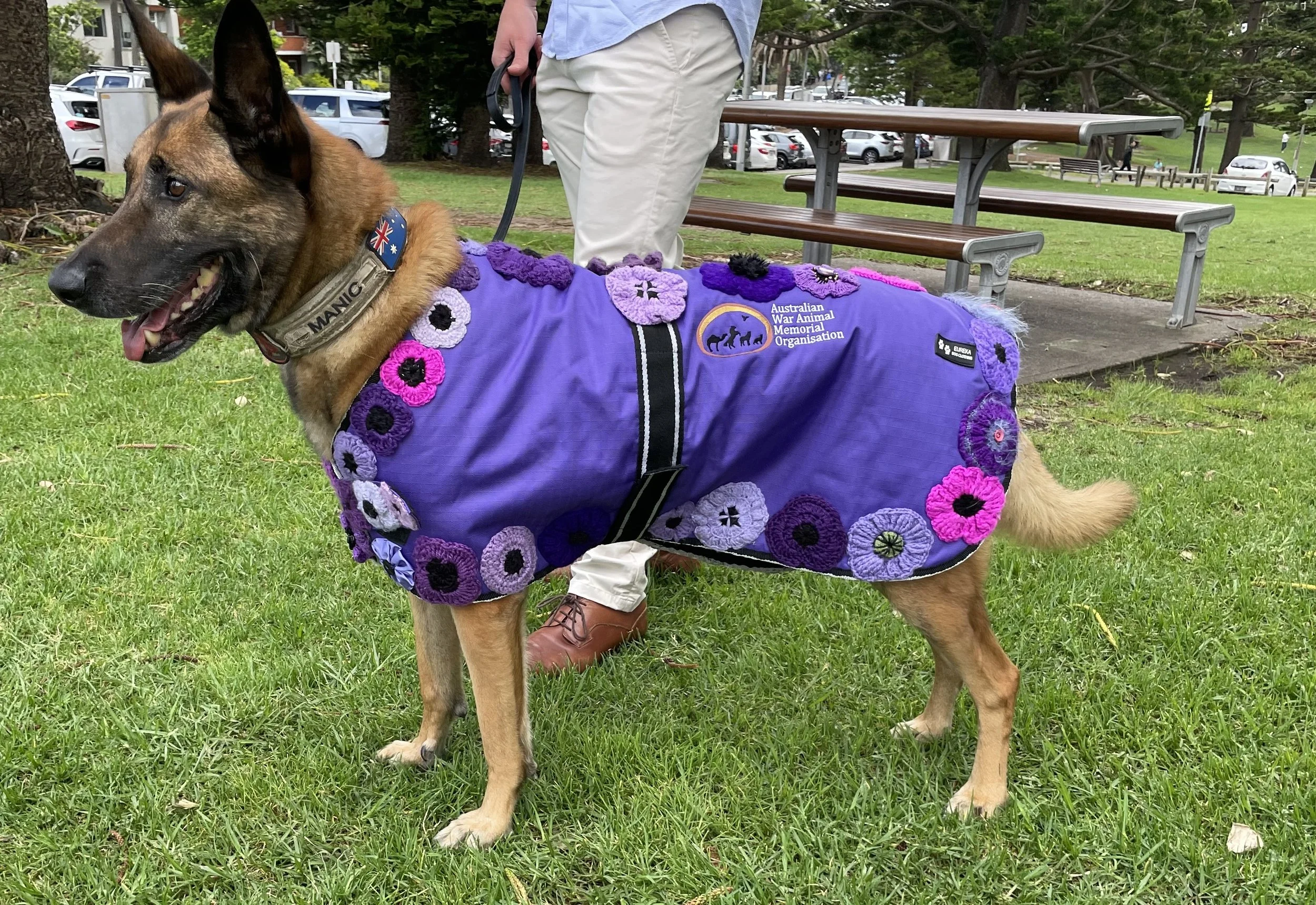 After retiring in 2021, Manic settled in the Sutherland Shire. His remarkable journey continued when he became the Club’s first four-legged honorary member. This connection led to the discovery of the Australian War Animal Memorial Organization (AWAMO) and the Veteran Assistance Dog Program, which support retired Military Working Dogs.